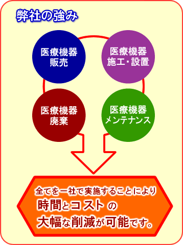 結果として、機器購入から施工・設置・メンテナンス・廃棄までの仕事を一貫して受注することが可能となり、多くのお客様から、信頼とご指示をいただいております。